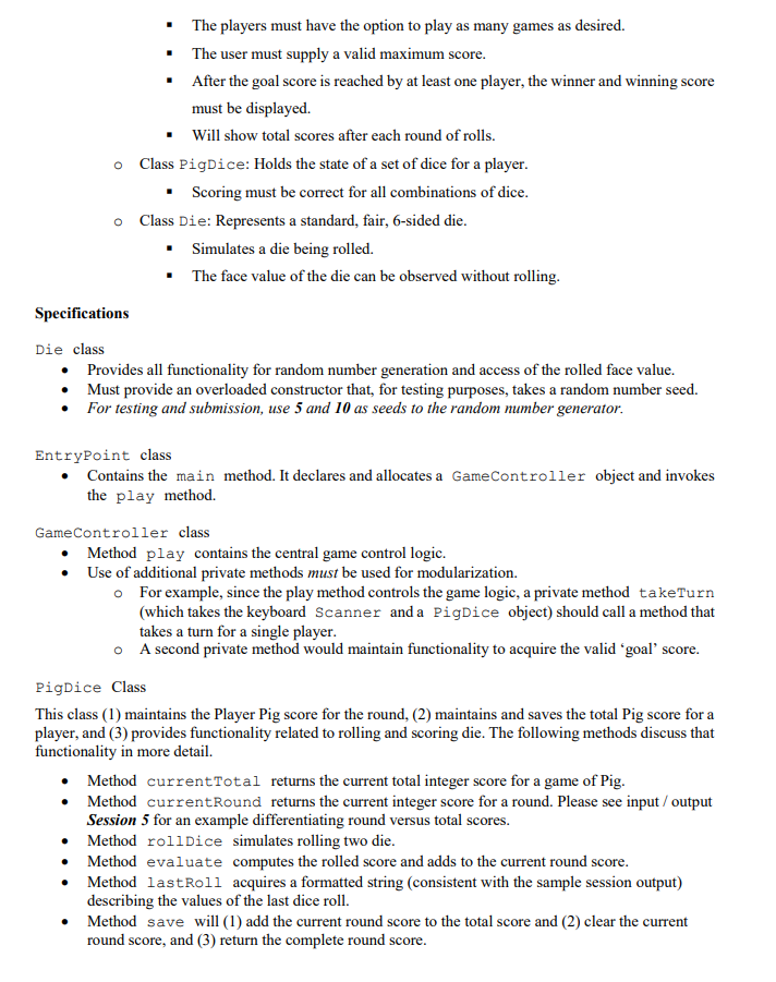 Solved Project 3 The Game Of Pig Overview Write A Program Chegg Com